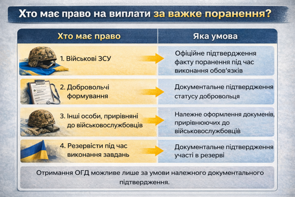 Хто має право на виплати за важке поранення