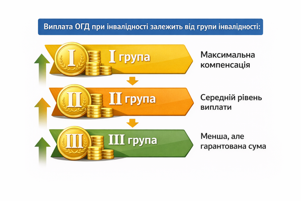 Виплата ОГД при інвалідності залежить від групи інвалідності:
