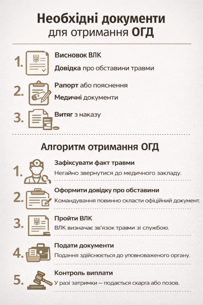 Багато військових помилково вважають, що у такій ситуації право на ОГД відсутнє. Насправді законодавство України передбачає значно ширші підстави для отримання виплат. Головне — правильно оформити документи та довести причинно-наслідковий зв’язок.