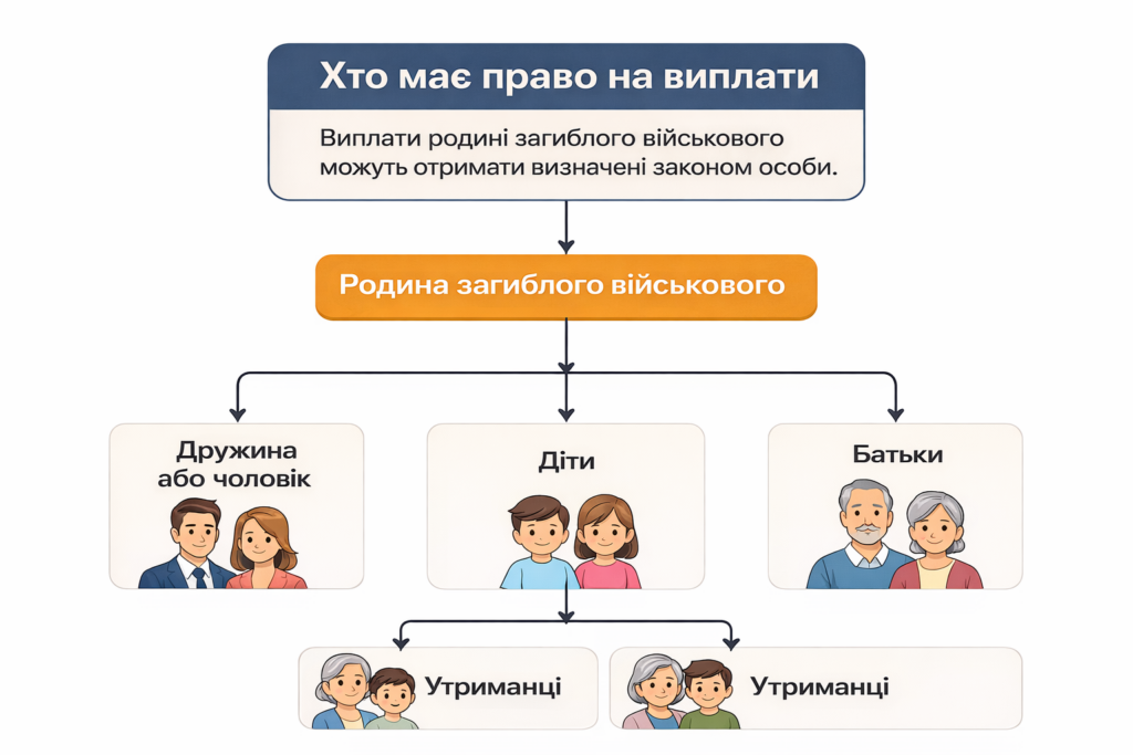 Виплати родині загиблого військового можуть отримати визначені законом особи.