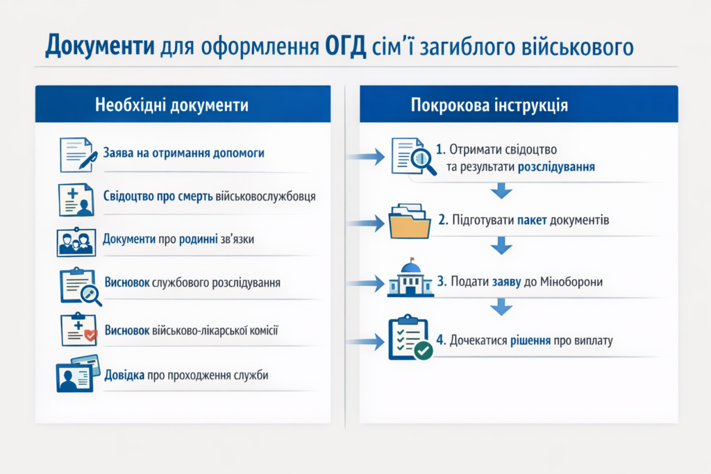 Щоб отримати виплату ОГД сім’ї загиблого військового, необхідно подати відповідний пакет документів.