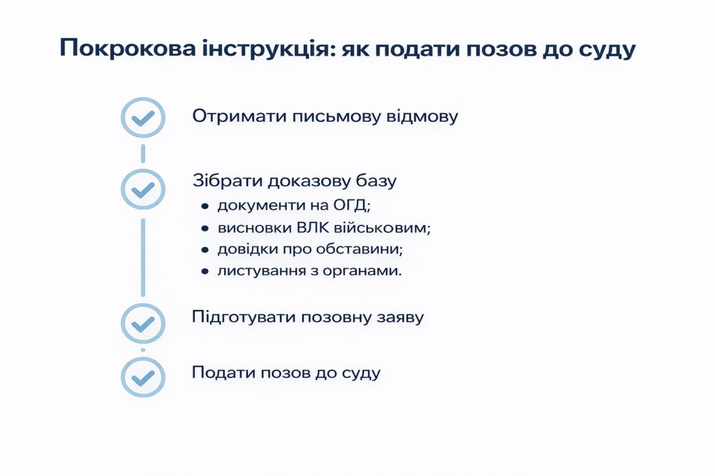 Однак важливо розуміти: судове оскарження ОГД — це ефективний механізм захисту ваших прав. У багатьох випадках саме суд стає тим інструментом, який дозволяє отримати належну компенсацію.
