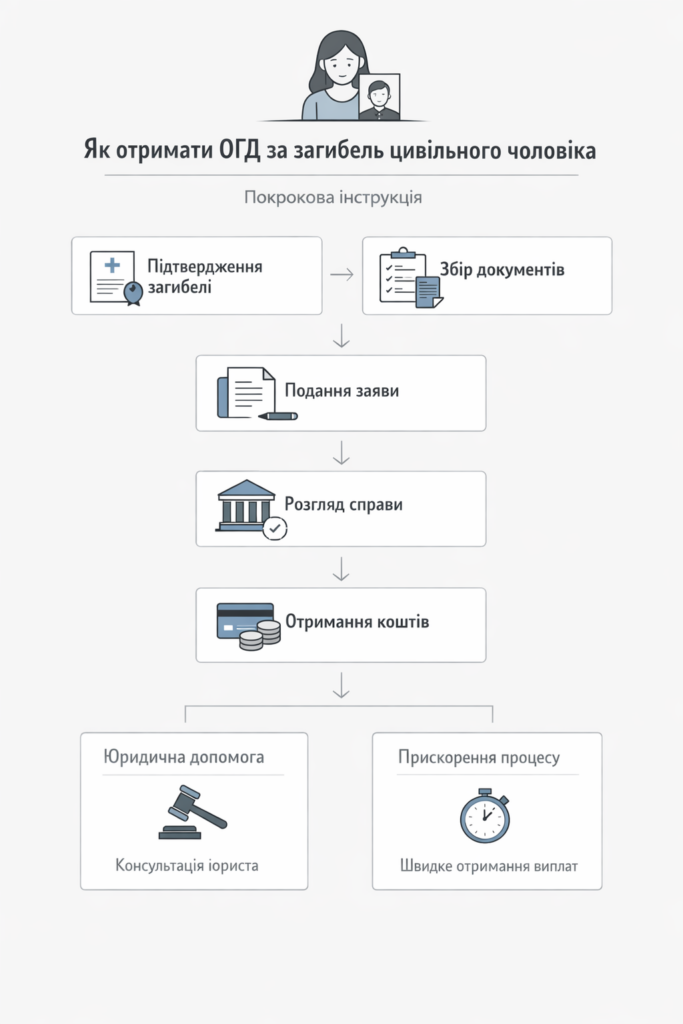 ОГД за загибель цивільного чоловіка — це важлива фінансова підтримка для родини, яка втратила близьку людину через війну. Проте процедура оформлення допомоги часто потребує значних зусиль, збору документів та правильного юридичного супроводу.