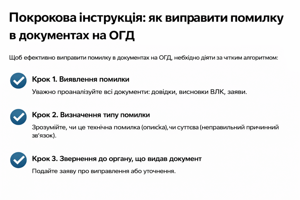 Щоб ефективно виправити помилку в документах на ОГД, необхідно діяти за чітким алгоритмом: